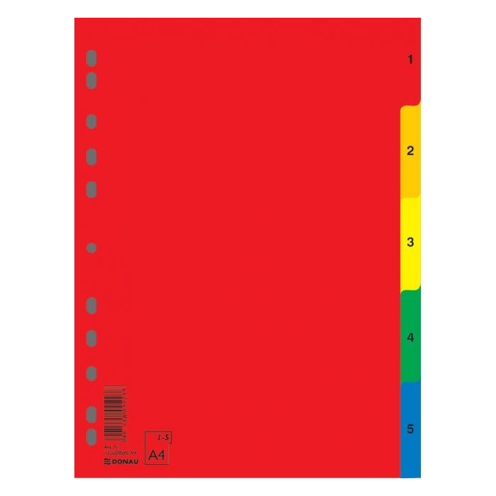 Rozraďovač formátu A4 vyrobený z tuhého polypropylénu. Jednotlivé stránky v rôznych farbách, multiperforácia na použitie rozraďovača v krúžkovom aj pákovom zakladači. Väčšie balenie 25 sád.