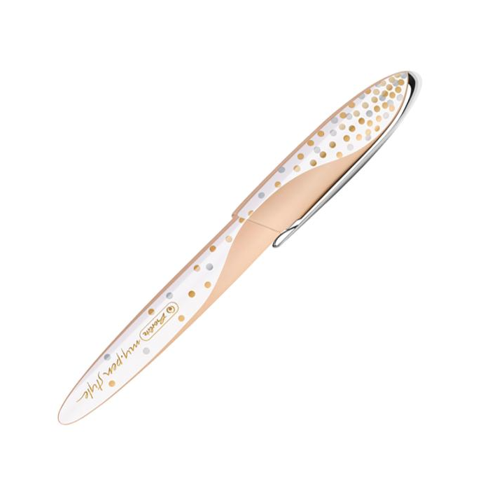 Plniace pero my.pen Pure Glam - plastové telo s ergonomickým gumeným držaním, vhodné pre pravákov aj ľavákov, vymeniteľná náplň, kovový klip. Balenie v blistri.