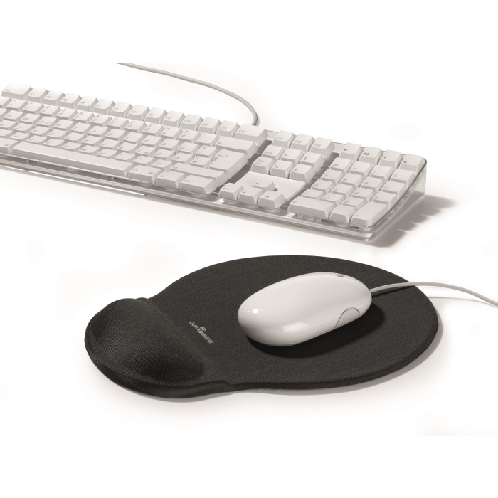 Ergonomická podložka pod myš s textilným povrchlom a zabudovanou podperou zápästia z pružného gélu. Odľahčí a masíruje zápästie. Príjemná povrchová úprava. Farba antracitová.
