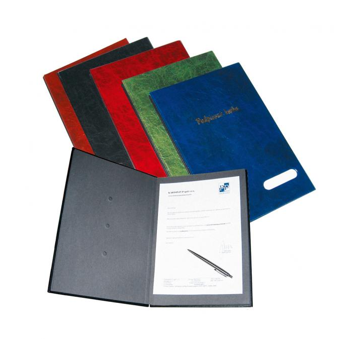 Podpisová kniha 14-dielna s okienkom na prednej strane na jednoduchú výmenu popisovateľného štitka, rozťahovateľný chrbát pre zvýšenie kapacity. Úprava v imitácii kože. Farba: modrá Počet oddielov: 14