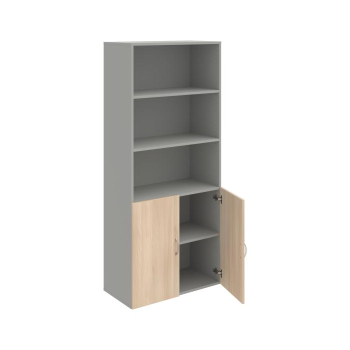 Kombinovaná skriňa - dvere/nika. Dôraz na funkčnosť a cenu. Kvalita a variabilita s nízkymi obstarávacími nákladmi. Materiály výrobcov z Európskej únie. Obojstranne pohľadový chrbát. Zabezpečenie políc proti náhodnému vysunutiu. 45 rôznych prvkov pre Vaše potreby a požiadavky. V našej ponuke nájdete skriňové moduly výšky 185 cm, 111 cm alebo 74 cm a šírky 80 cm alebo 40 cm. Hĺbka všetkých modelov skríň radu Drive je 40 cm (42 cm s dverami). Chrbát, vyrobený z 3 mm hrubých dosiek HDF, je obojstranne pohľadový, takže skrine môžete použiť ako priestorový deliaci prvok. Vďaka polohovateľným policiam (hrúbky 18 mm) je možné priestor prispôsobiť Vašim predstavám. Základná výška úložného priestoru je prispôsobená výške štandardného šanónu. Dvere sú chránené 2mm hranou ABS a osadené kvalitným kovaním s doživotnou zárukou. Okrem plných a presklených dverí Vám ponúkame aj skrine s roletovým systémom. Pokiaľ sa rozhodnete pre umiestnenie skríň na podlahu, nezabudnite si doobjednať rektifikačné nohy, ktoré nie sú štandardnou súčasťou objednávky. Aby sa zásielka dostala v poriadku až do Vašej kancelárie, dodávame skrine demontované v niekoľkých samostatných a bezpečne zabalených balíkoch. Súčasťou každého balenia je tiež prehľadný návod. Na skrive Drive dostanete záruku 5 rokov.