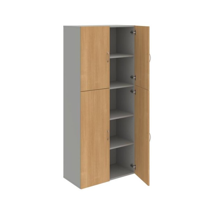 Dôraz na funkčnosť a cenu. Kvalita a variabilita s nízkymi obstarávacími nákladmi. Materiály výrobcov z Európskej únie. Obojstranne pohľadový chrbát. Zabezpečenie políc proti náhodnému vysunutiu. V našej ponuke nájdete skriňové moduly výšky 185 cm, 111 cm alebo 74 cm a šírky 80 cm alebo 40 cm. Hĺbka všetkých modelov skríň radu Drive je 40 cm (42 cm s dverami). Chrbát, vyrobený z 3 mm hrubých dosiek HDF, je obojstranne pohľadový, takže skrine môžete použiť ako priestorový deliaci prvok. Vďaka polohovateľným policiam (hrúbky 18 mm) je možné priestor prispôsobiť Vašim predstavám. Základná výška úložného priestoru je prispôsobená výške štandardného šanónu.Dvere sú chránené 2mm hranou ABS a osadené kvalitným kovaním s doživotnou zárukou. Okrem plných a presklených dverí Vám ponúkame aj skrine s roletovým systémom.Pokiaľ sa rozhodnete pre umiestnenie skríň na podlahu, nezabudnite si doobjednať rektifikačné nohy, ktoré nie sú štandardnou súčasťou objednávky. Aby sa zásielka dostala v poriadku až do Vašej kancelárie, dodávame skrine demontované v niekoľkých samostatných a bezpečne zabalených balíkoch. Súčasťou každého balenia je tiež prehľadný návod. Na skrine Drive dostanete záruku 5 rokov.