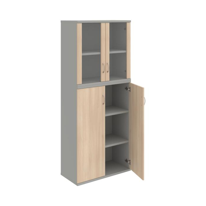 Kombinovaná skriňa - dvere/nika. Kancelárske skrine STRONG majú robustnú konštrukciu a vyššiu nosnosť políc ako bežné kancelárske skrine.V ponuke sú skriňové moduly s výškou 185 cm, 111 cm alebo 74 cm a šírky 80 cm alebo 40 cm. Hĺbka všetkých modelov skriňového radu STRONG je 40 cm.Chrbát, vyrobený z 8 mm hrubých dosák, je obojstranne pohľadový, takže skrine môžete použiť ako priestorový deliaci prvok. Hrúbka samotných políc je 25 mm, čo znamená nosnosť 80 kg na 1 policu.Korpusy, dvierka a police skríň sú olepené odolnou 2mm ABS hranou, ktorá garantuje dostatočnú ochranu proti poškodeniu.