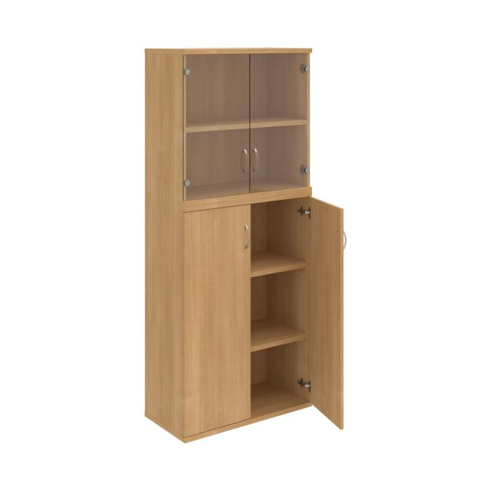 Kombinovaná skriňa - dvere/nika. Kancelárske skrine STRONG majú robustnú konštrukciu a vyššiu nosnosť políc ako bežné kancelárske skrine.V ponuke sú skriňové moduly s výškou 185 cm, 111 cm alebo 74 cm a šírky 80 cm alebo 40 cm. Hĺbka všetkých modelov skriňového radu STRONG je 40 cm.Chrbát, vyrobený z 8 mm hrubých dosák, je obojstranne pohľadový, takže skrine môžete použiť ako priestorový deliaci prvok. Hrúbka samotných políc je 25 mm, čo znamená nosnosť 80 kg na 1 policu.Korpusy, dvierka a police skríň sú olepené odolnou 2mm ABS hranou, ktorá garantuje dostatočnú ochranu proti poškodeniu.