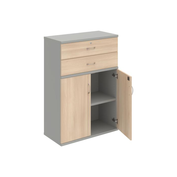 Kancelárske skrine STRONG majú robustnú konštrukciu a vyššiu nosnosť políc ako bežné kancelárske skrine.V ponuke sú skriňové moduly s výškou 185 cm, 111 cm alebo 74 cm a šírky 80 cm alebo 40 cm. Hĺbka všetkých modelov skriňového radu STRONG je 40 cm.Chrbát, vyrobený z 8 mm hrubých dosák, je obojstranne pohľadový, takže skrine môžete použiť ako priestorový deliaci prvok. Hrúbka samotných políc je 25 mm, čo znamená nosnosť 80 kg na 1 policu.Korpusy, dvierka a police skríň sú olepené odolnou 2mm ABS hranou, ktorá garantuje dostatočnú ochranu proti poškodeniu.