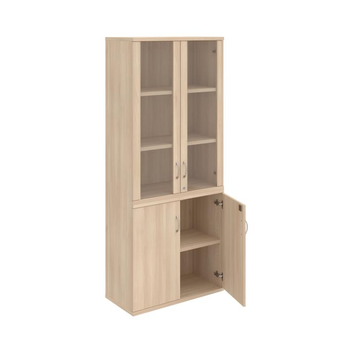 Kombinovaná skriňa - dvere/nika. Kancelárske skrine STRONG majú robustnú konštrukciu a vyššiu nosnosť políc ako bežné kancelárske skrine.V ponuke sú skriňové moduly s výškou 185 cm, 111 cm alebo 74 cm a šírky 80 cm alebo 40 cm. Hĺbka všetkých modelov skriňového radu STRONG je 40 cm.Chrbát, vyrobený z 8 mm hrubých dosák, je obojstranne pohľadový, takže skrine môžete použiť ako priestorový deliaci prvok. Hrúbka samotných políc je 25 mm, čo znamená nosnosť 80 kg na 1 policu.Korpusy, dvierka a police skríň sú olepené odolnou 2mm ABS hranou, ktorá garantuje dostatočnú ochranu proti poškodeniu.