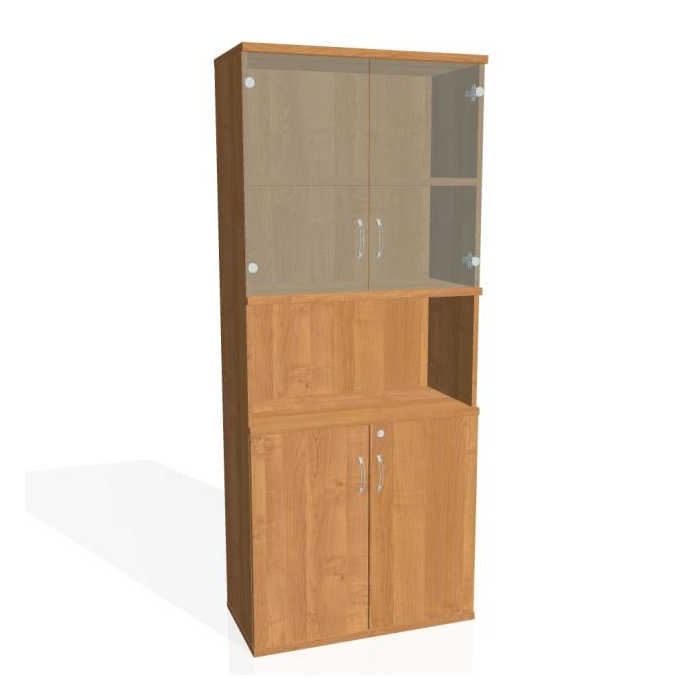 Kombinovaná skriňa - dvere/nika. Kancelárske skrine STRONG majú robustnú konštrukciu a vyššiu nosnosť políc ako bežné kancelárske skrine.V ponuke sú skriňové moduly s výškou 185 cm, 111 cm alebo 74 cm a šírky 80 cm alebo 40 cm. Hĺbka všetkých modelov skriňového radu STRONG je 40 cm.Chrbát, vyrobený z 8 mm hrubých dosák, je obojstranne pohľadový, takže skrine môžete použiť ako priestorový deliaci prvok. Hrúbka samotných políc je 25 mm, čo znamená nosnosť 80 kg na 1 policu.Korpusy, dvierka a police skríň sú olepené odolnou 2mm ABS hranou, ktorá garantuje dostatočnú ochranu proti poškodeniu.
