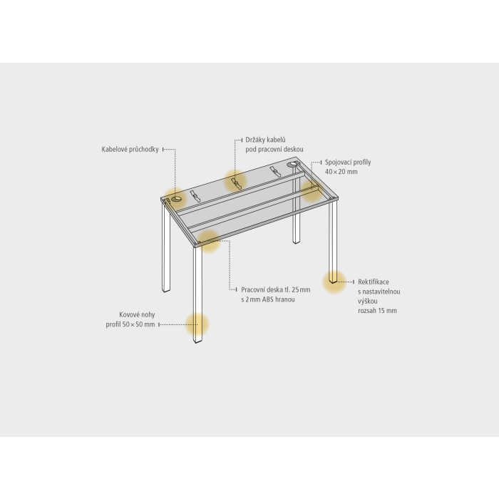 Pracovný stôl rovný. Doska stola z kvalitného lamina. Pevná kovová konštrukcia podnožia zo štvorcových profilov 50 x 50 mm je tvorená kompaktnými pármi nôh, ktoré sú spojené priečnikmi. Výškovo nastaviteľná rektifikácia zaisťuje možnosť dorovnania prípadnej nerovnosti podlahy až o 1,5 cm. Stolová pracovná doska z LTD má hrúbku 25 mm a je zakončená 2mm hranou ABS, ktorá ju chráni pred poškodením. Samozrejmosťou sú káblové priechody a systém pre zavesenie káblov pod stolovou doskou. Možnosť objednania i v bielej farbe. Stolové doplnky, kontajnery a skrine vyberajte z ponuky kancelárskeho nábytku Hobis. Aby sa zásielka dostala v poriadku až do Vašej kancelárie, dodávame stoly demontované v niekoľkých samostatných a bezpečne zabalených škatuliach. Súčasťou každého balenia je tiež prehľadný návod. Na stoly UNI sa vzťahuje záruka 5 rokov. Farebnosť je ilustratívna. Cena montáže je 15% z cenníkovej ceny produktu. Požiadavku na montáž uveďte prosím do poznámky k objednávke. Objednávka tohto produktu je záväzná a produkt nie možné vrátiť.