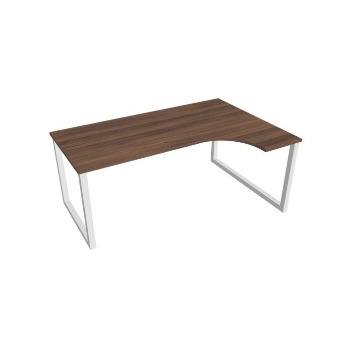 Pracovný stôl UNI O, ergo, ľavý, 180x75,5x120 cm, orech/biela