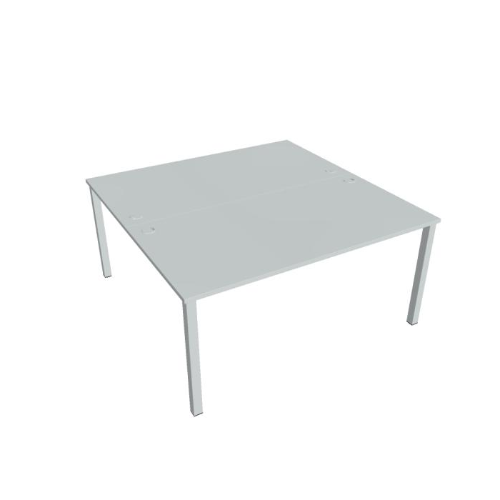 Zdvojený pracovný stôl rovný. Doska stola z kvalitného lamina. Pevná kovová konštrukcia podnožia zo štvorcových profilov 50 x 50 mm je tvorená kompaktnými pármi nôh, ktoré sú spojené priečnikmi. Výškovo nastaviteľná rektifikácia zaisťuje možnosť dorovnania prípadnej nerovnosti podlahy až o 1,5 cm. Stolová pracovná doska z LTD má hrúbku 25 mm a je zakončená 2mm hranou ABS, ktorá ju chráni pred poškodením. Samozrejmosťou sú káblové priechodky a systém pre zavesenie káblov pod stolovou doskou. Možnosť objednania bieleho či sivého prevedenia podnožia. Stolové doplnky, kontajnery a skrine vyberajte z ponuky kancelárskeho nábytku Hobis. Aby sa zásielka dostala v poriadku až do Vašej kancelárie, dodávame stoly demontované v niekoľkých samostatných a bezpečne zabalených škatuliach. Súčasťou každého balenia je tiež prehľadný návod. Na stoly UNI sa vzťahuje záruka 5 rokov. Farebnosť je ilustratívna.
