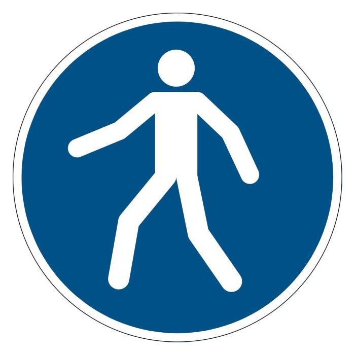 Registrované bezpečnostné označovanie na identifi káciu nebezpečných oblastí, skladovacích priestorov, chodníkov a pod. Odolnosť proti skĺznutiu R9 podľa DIN 51130 v súlade s ISO 7010. Samolepiace značky na bezpečnostné označenie pre vnútorné použitie v skladoch, distribučných centrách, výrobných závodov a i. Odolné voči oderu a ťažkej záťaži. Príkazová značka priemer 430 mm, hrúbka 0,4 mm.