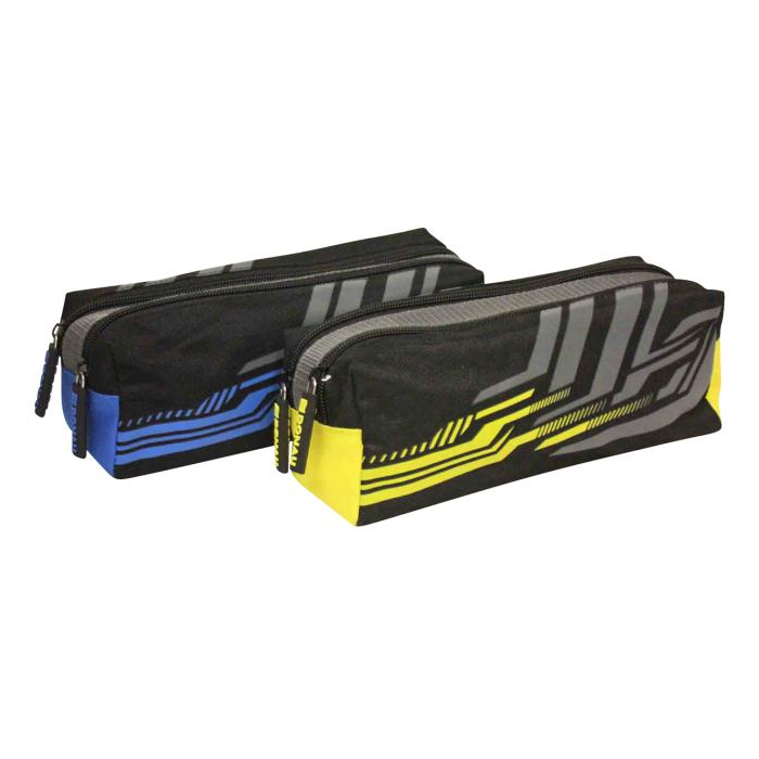 Puzdro na perá s 2 zipsami, 2 rôzne farby, polyesterový materiál, farebná podšívka.