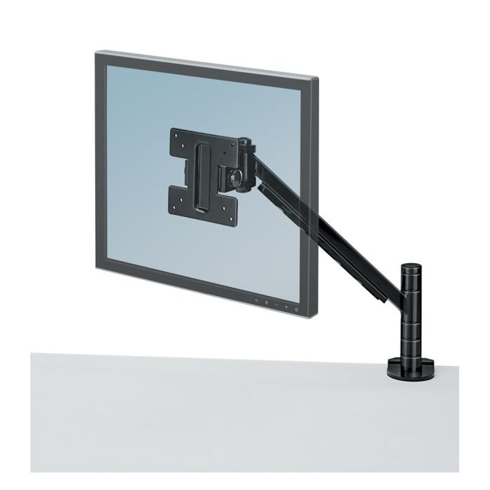 Rameno s možnosťou otáčania do 360 ° a vertikálnym nastavením sklonu v rozpätí +45 až -45 °. Optimálne nastavenie výšky v 4 fixačných výškových polohách (0-483 mm). Vhodné pre monitory do 21` s hmotnosťou do 6,5 kg. Úchyt na hranu stola. Ľahká montáž pomocou 2 svoriek. Výška základne: 0-483 mm Nosnosť: 6,5 kg