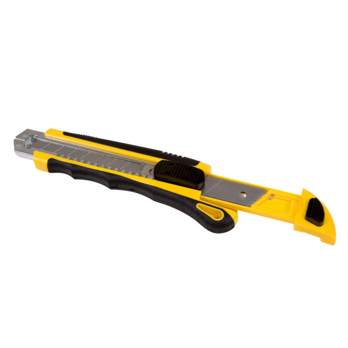 Profesionálny rezač s puzdrom z ušľachtilej ocele, gumenou zónou pre dokonalé uchytenie a otvorom na zavesenie. Po vytiahnutí opotrebovaného noža sa zasunutím bežca nainštaluje z integrovaného zásobníka automaticky nôž nový.