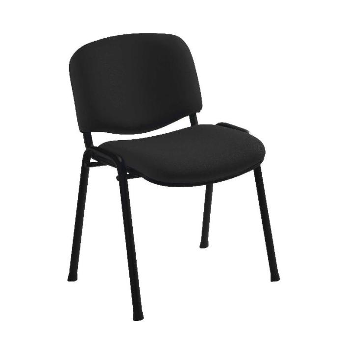 Stohovateľná konferenčná stolička s látkovým poťahom, sedadlo so spodním plastovým krytom.