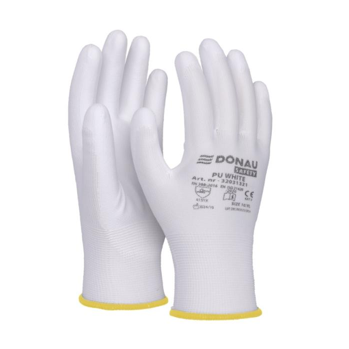 Rukavice pletené, polomáčané DONAU SAFETY PU kat. II biele veľ. 10