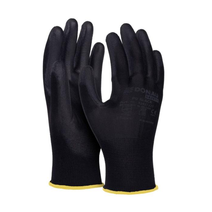 Rukavice pletené, polomáčané DONAU SAFETY PU kat. II čierne veľ. 9