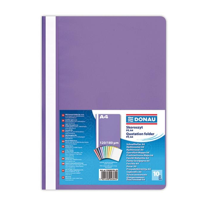 Štandardný polypropylénový rýchloviazač s priehľadnou prednou stranou a nasúvacím popisným pásikom. Formát A4. Balenie 10 ks.