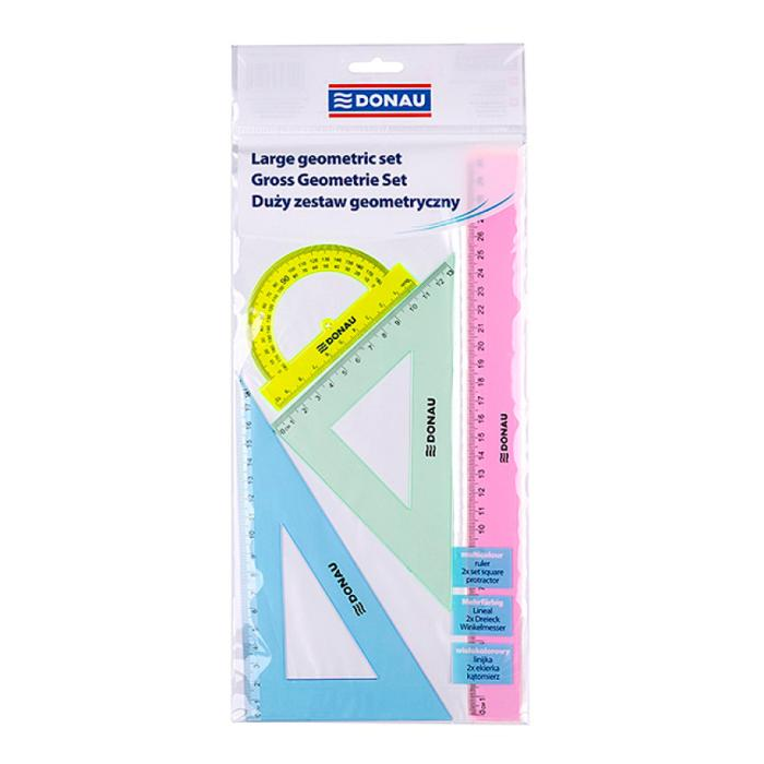 Rysovacia súprava pravítiek DONAU veľká, mix farieb