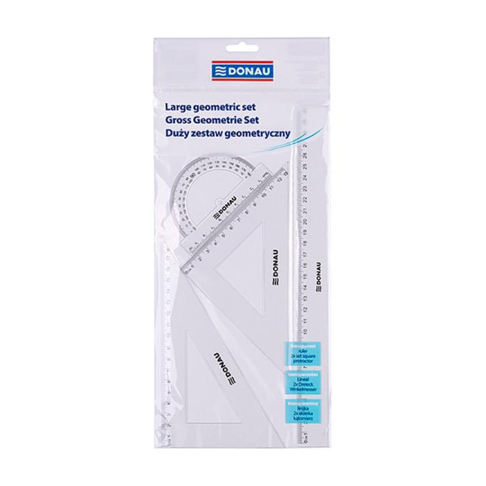 Rysovacia súprava pravítiek DONAU veľká, transparentná