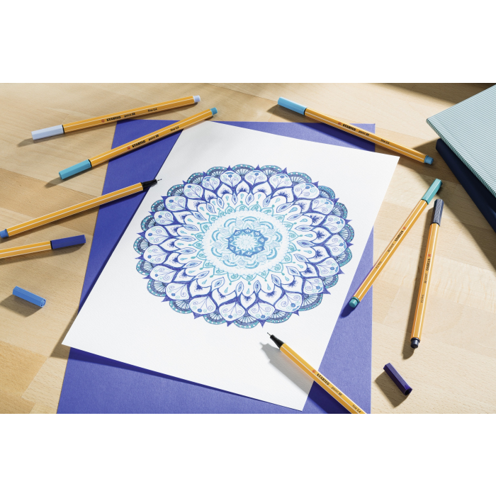 Veľmi obľúbený jednorazový liner na atramentovej báze. Vhodný na písanie a rysovanie podľa šablóny alebo pravítka. Kovové puzdro hrotu zaisťuje dlhú životnosť. Šírka stopy 0,4 mm. Sada 10 farieb.