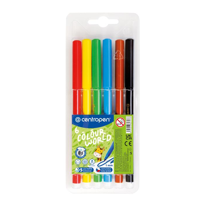 Sada farebných popisovačov. ERGO držanie. Zdraviu neškodlivý atrament. Odolnosť proti vyschnutiu až 5 rokov. Vyprateľné. Ventilačný vrchnák. Hrot odolný voči zatlačeniu.