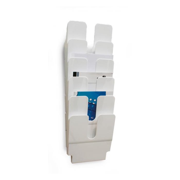 Sada stojanov na brožúry Flexiplus so 6 priehradkami na informácie vo formáte A4. Priehradka s kapacitou 23 mm. Montáž sady na stenu. Rozmery: 247 x 1080 x 100 mm (Š x V x H). Ideálna na vystavenie letákov, novín a časopisov v recepciách a čakárňach, na veľtrhoch alebo v kancelárii. Vyrobené v Nemecku. Farba biela.