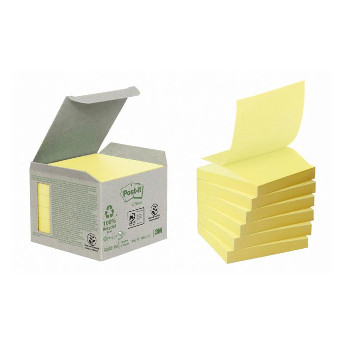 - Post-it® recyklované bločky sú vyrobené zo 100 % recyklovaného papiera a lepidla z obnoviteľných zdrojov. - Vyrábajú sa zo 100 % recyklovaného papiera s certifikáciou PEFC RECYCLED . - Lepidlo z obnoviteľných zdrojov. - Post-it® bločky sú vyrobené z papierových vláken s certifikáciou PEFC. - Stiahnite si zadarmo aplikáciu Post-it®. - žlté