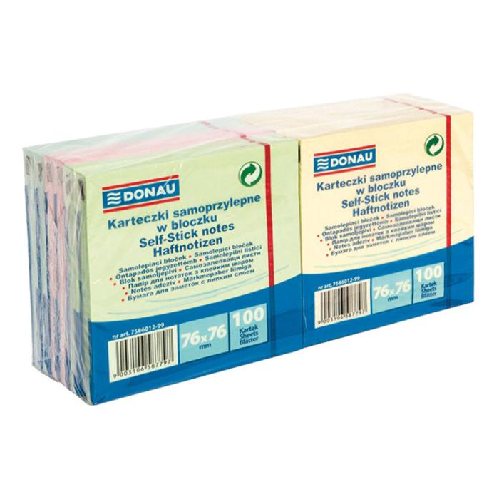 Samolepiace poznámkové bločky v pastelových farbách. V balení 12 farebných bločkov po 100 lístkov (6 × žltá, 2 modré, 2 zelené a 2 modré). Väčšie balenie 12 ks.