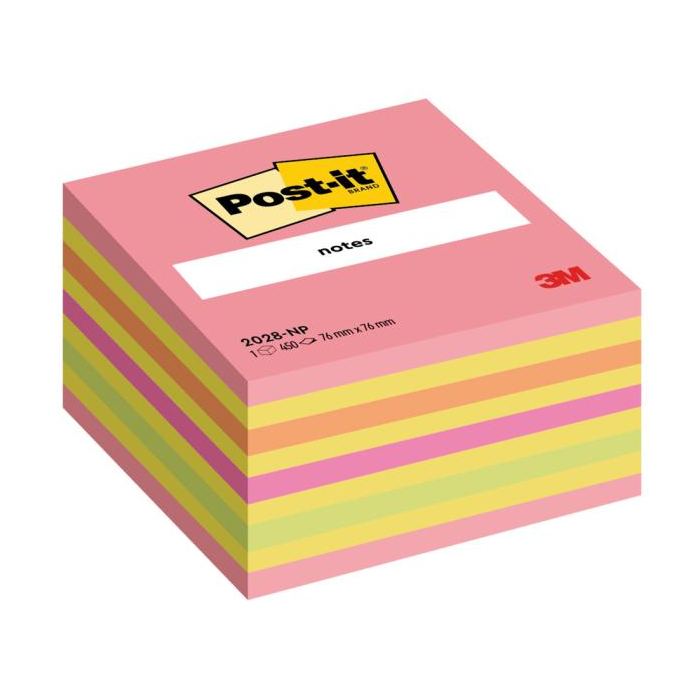 Samolepiaci bloček Post-it, 76 x 76 mm, neónová ružová, mix farieb