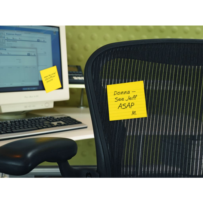 Samolepiace bločky Post-it® vo veľkom formáte v rôznych živých farbách. Vďaka špeciálnemu lepidlu držia lístky aj na nerovnom povrchu a po odlepení nezanechávajú stopy po lepidle. Rozmery 101x101 mm. Počet lístkov 6x90.