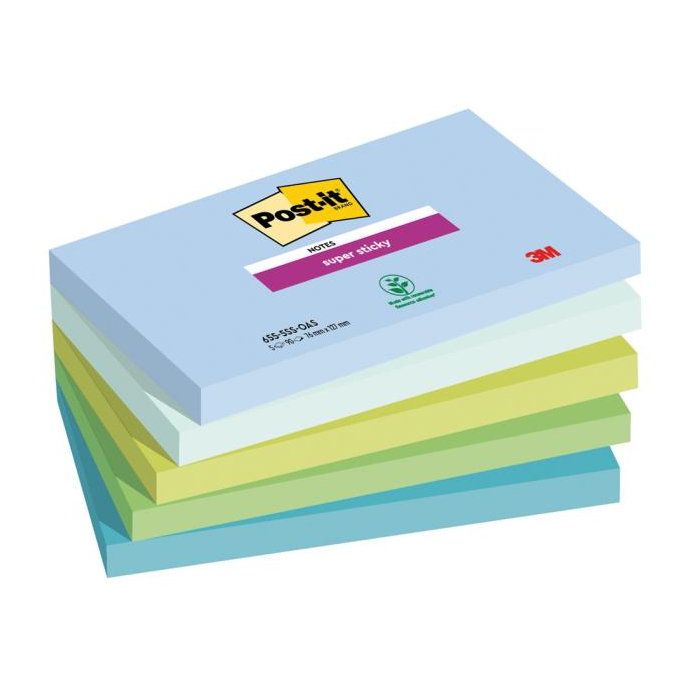 Samolepiaci bloček Post-it Super Sticky OASIS, veľkosť 76x127 mm, 5 bločkov po 90 lístkov