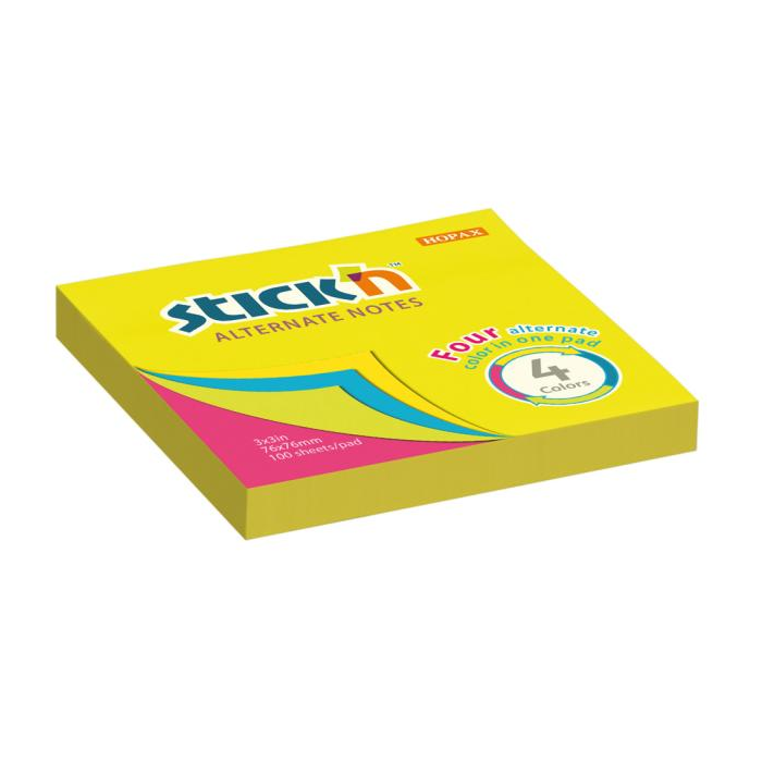 Samolepiaci bloček Stick’n Hopax Alternate, mix neón, 76 x76 mm