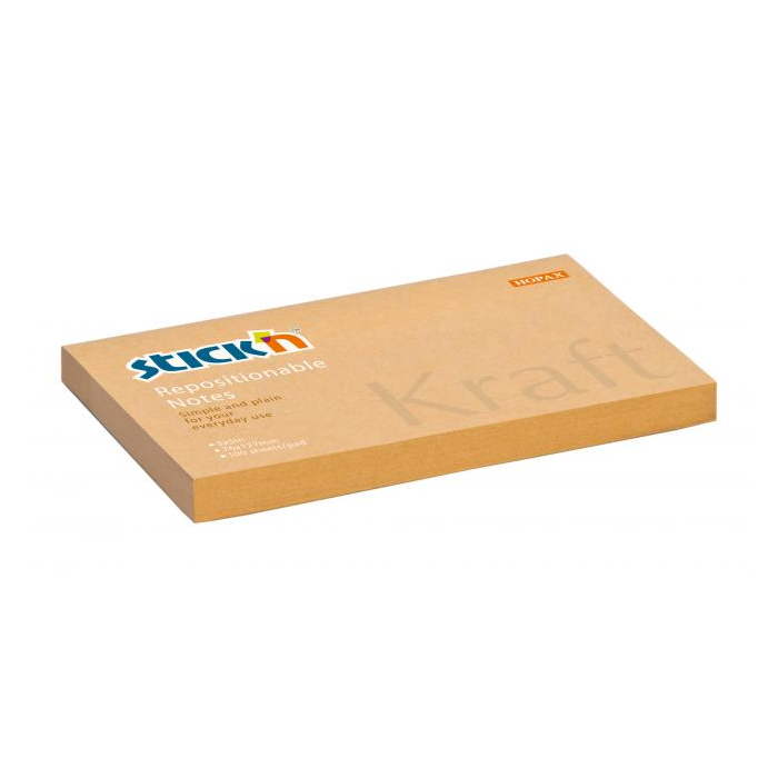 Samolepiace bločky z prírodného hnedého papiera. Sú ľahko odlepiteľné, po odlepení nezanechávajú žiadnu stopu. Väčšie balenie 12 ks. Rozmery 76 × 127 mm. Počet lístkov 100. Farba prírodná hnedá.