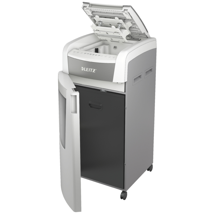 Plnoautomatická skartovačka na papier od firmy Leitz s jedinečnou čistou vyprázdňovacou funkciou. Je taká inteligentná, že potichu pracuje sama, len vložíte stoh papiera (vrátane kancelárskych sponiek a sponiek do zošívačky), zatvoríte veko a môžete ísť za svojou robotou. Mimoriadne dôveryhodná a vysokovýkonná skartovačka s funkciou proti zaseknutiu papiera, tichá a s prvotriedne dlhou dobou prevádzky (240 minút). Automaticky skartuje 600 hárkov A4 na úrovni zabezpečenia P-5 (2 × 15 mm) s mikrorezom do veľkého 110l koša. Jednoduché ovládanie pomocou dotykových prvkov.