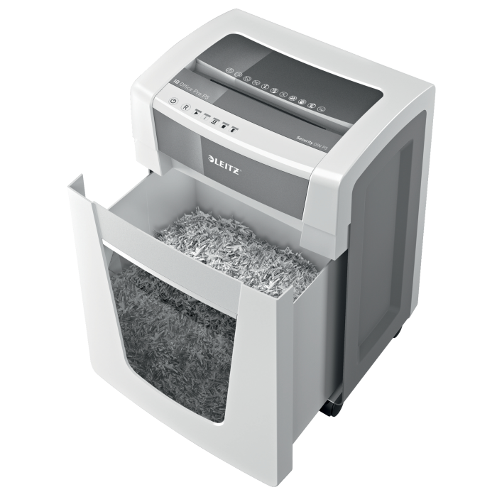 Nový skartovač Leitz IQ Office Pro ponúka moderný štýlový vzhľad, vysokú výkonnosť a bezpečnosť. Stupeň utajenia DIN P5 pre vysoké zabezpečenie skartovaných dokumentov. Perfektné bezproblémové skartovanie, ideálne na použitie vo veľkých kanceláriách. Excelentný výkon s technológiou proti zaseknutiu papiera, tichý chod a dlhý čas, po ktorý je skartovač schopný skartovať. Skartuje až 15 hárkov A4 na malé mikročasti a do veľkého koša s objemom 30 l. Jednoduché ovládanie pomocou dotykových ovládacích prvkov. Dlhý skartovací cyklus pre až 4 hodiny dlhé neprerušované skartovanie.
