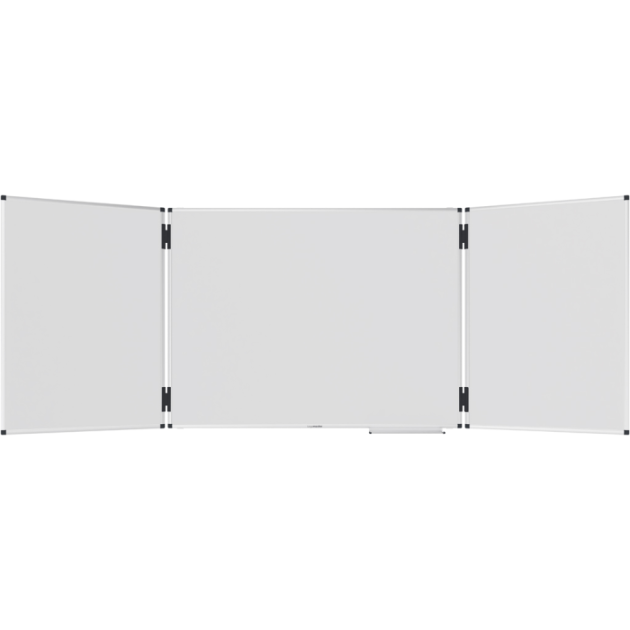 Rozkladacia hybridná magnetická tabuľa s dostatkom miesta na písanie, pripevňovanie poznámok a obrázkov v konferenčných miestnostiach alebo učebniach. Dve obojstranné výklopné krídla, ktoré možno zaaretovať pomocou klipov. Vhodné na písanie fixkami na tabuľu stierateľnými za sucha. Vrátane odkladacej lišty (30 cm), montážnej sady a montážneho návodu.