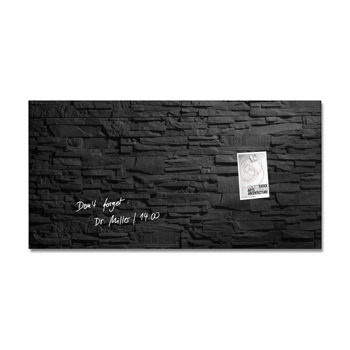 Magnetické tabule z tepelne tvrdeného bezpečnostného skla (EN 12150-1) hrúbky 15 mm s jednoduchou a bezpečnou montážou s certifi kátom TUV dodajú vašim kanceláriám, konferenčným miestnostiam, jedálňam i domácnostiam exkluzívny vzhľad. Sú popisovateľné kriedovými popisovačmi Sigel a za sucha zotierateľné utierkou z mikrovákna. Súčasťou balenia sú 3 super silné neodymové magnety a montážny materiál. Pri používaní príslušenstva Sigel je garantovaná 25-ročná záruka na magnetický sklenený povrch tabule. Rozmery 91 × 46 cm. Dizajn bridlica.
