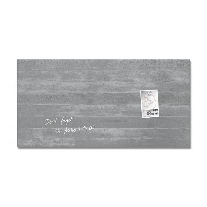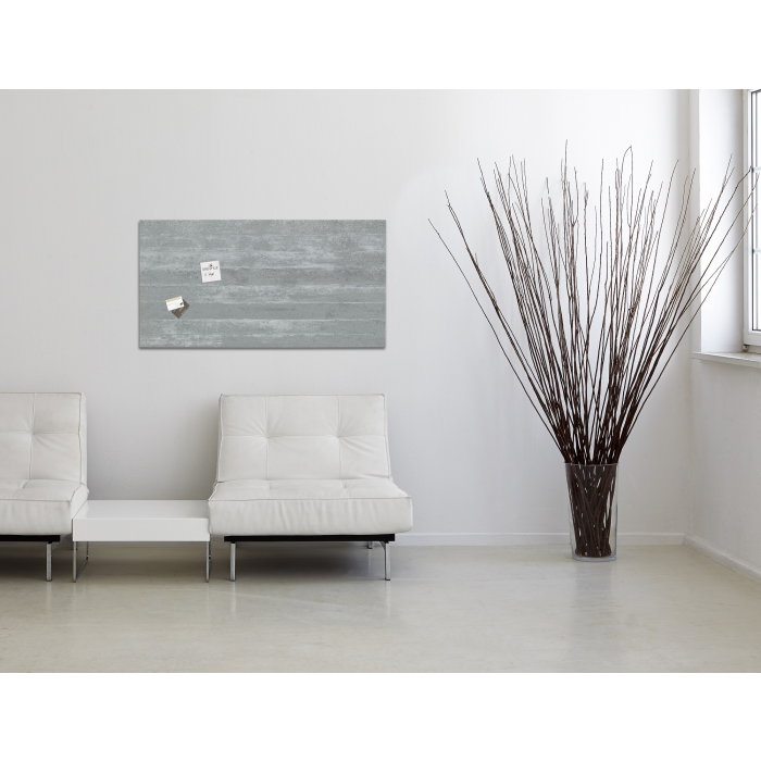 Magnetické tabule z tepelne tvrdeného bezpečnostného skla (EN 12150-1) hrúbky 15 mm s jednoduchou a bezpečnou montážou s certifi kátom TUV dodajú vašim kanceláriám, konferenčným miestnostiam, jedálňam i domácnostiam exkluzívny vzhľad. Sú popisovateľné kriedovými popisovačmi Sigel a za sucha zotierateľné utierkou z mikrovákna. Súčasťou balenia sú 3 super silné neodymové magnety a montážny materiál. Pri používaní príslušenstva Sigel je garantovaná 25-ročná záruka na magnetický sklenený povrch tabule. Rozmery 91 × 46 cm. Dizajn podhľadový betón.
