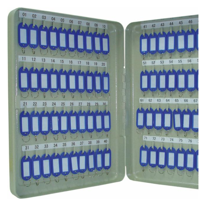 Uzamykateľná skrinka na 80 kľúčov, vyrobená z pevnej ocele. Súčasťou balenia sú 2 kľúče. Farba sivá. Rozmery 280 × 370 × 60 mm.
