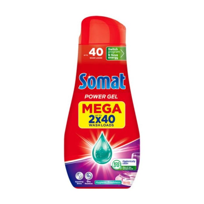 Tekutý umývací prostriedok do umývačky Somat All-in-1 Gél sa ľahko dávkuje podľa stupňa znečistenia a je vhodný na použitie na všetky taniere, poháre, hrnčeky, fľaše, príbory, hrnce a panvice, ktoré je možné umývať v umývačke. Aktívne zloženie gélu do umývačky riadu sa rýchlo rozpúšťa, nezanecháva žiadne zvyšky jedla, škvrny ani usadenú mastnotu, a to aj na krátky a eco program s nízkou teplotou - prepnite program a ušetrite vodu a až 20 % energie* so Somatom. Pre žiarivo čistý riad po každom cykle.