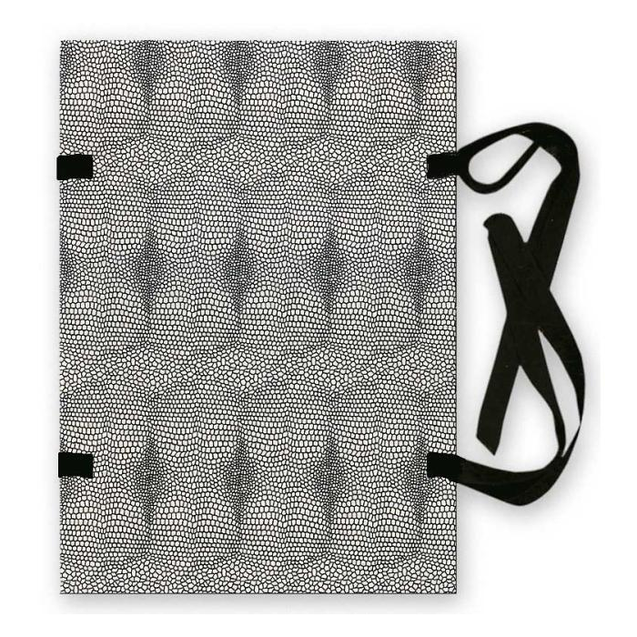 Jednostranne poťahované kartónové dosky bez chrbta, spojené šnúrkami. Vyrobené zo strojnej lepenky s gramážou 1 050 g. Prevedenie hadia koža. Formát A4. Väčšie balenie 25 ks.