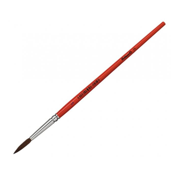 Guľatý vlasový štetec Pelikan 23, štandarndá kvalita, s hliníkovým úchytom, oranžová lakovaná rukoväť, hrúbka stopy uvedená ako číslo.
