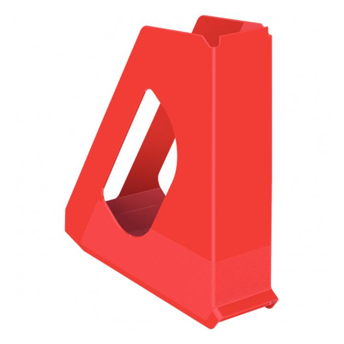 Moderný stojan na časopisy pre uloženie dokumentov formátu A4 na pracovnom stole s unikátnym embosovaným povrchom (štvorčeky) na dne stojana vo sviežich farbách radu Esselte VIVIDA. Znížený chrbát pre jasnú identifikáciu obsahu z prednej strany, integrovaný úchyt pre ľahké vytiahnutie z police. Farba červená. Rozmery (š x v x h) 72 x 256 x 260 mm. Je možné kombinovať ho s ostatnými výrobkami z radu Esselte Europost a VIVIDA pre jednotný vzhľad kancelárie.