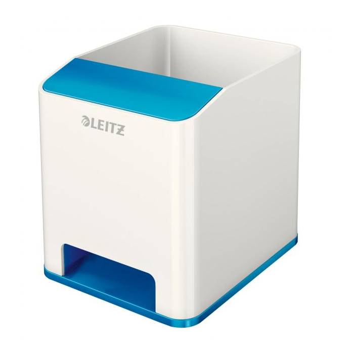 Neprehliadnuteľný štýlový stojan na perá v prémiovej kvalite Leitz v štýlových žiarivých farbách WOW. Extra odkladač pre smartphone do veľkosti iPhone 6 plus so špeciálnou funkciou pre zosilovanie zvuku, veľa miesta pre písacie potreby, pravítko, stylus a iné drobnosti. Moderný dizajn, ktorý vyzerá rovnako dobre v kancelárii, ako aj doma na pracovnom stole, dobre dopĺňa ostatné produkty radu WOW.