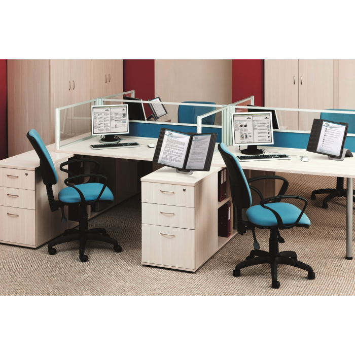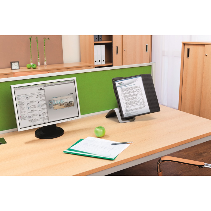 Štýlový stojan na stôl dodávaný s 10 displejovými panelmi SHERPA a indexami. Ideálny do kancelárií a na verejne prístupné miesta. Otvor na hornej strane panelu zabezpečuje jednoduché vkladanie a v prípade potreby rýchlu výmenu vložených materiálov. Farba panelov čierna.