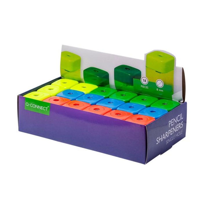 Plastové strúhadlo s 1 otvorom na štandardnú ceruzku. Materiál plast. Väčšie balenie 18 ks v mixe farieb bez možnosti výberu konkrétnej farby.