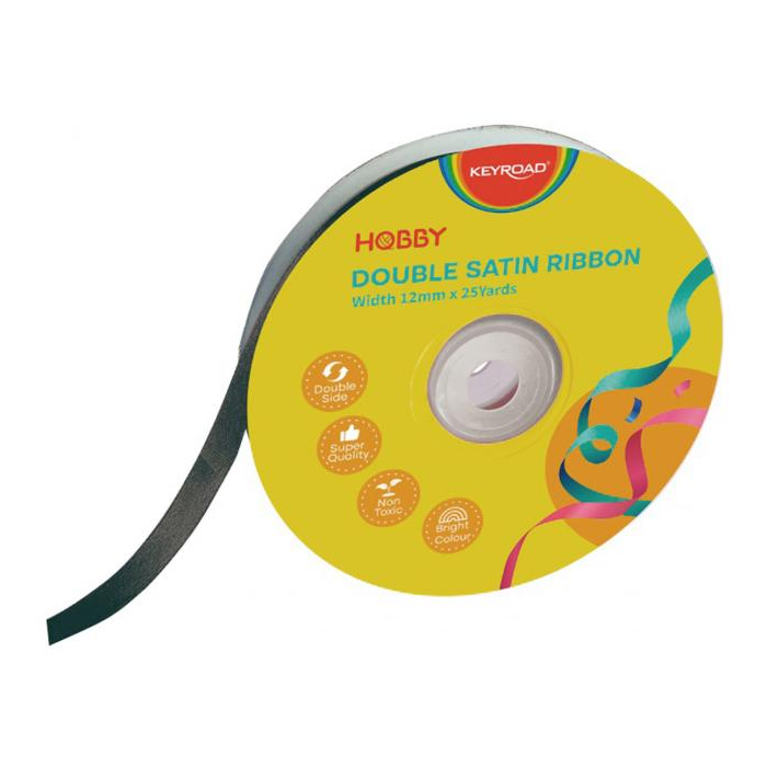 Stuha KEYROAD dvojitá saténová 12 mm x 22,86 m, na cievke, čierna