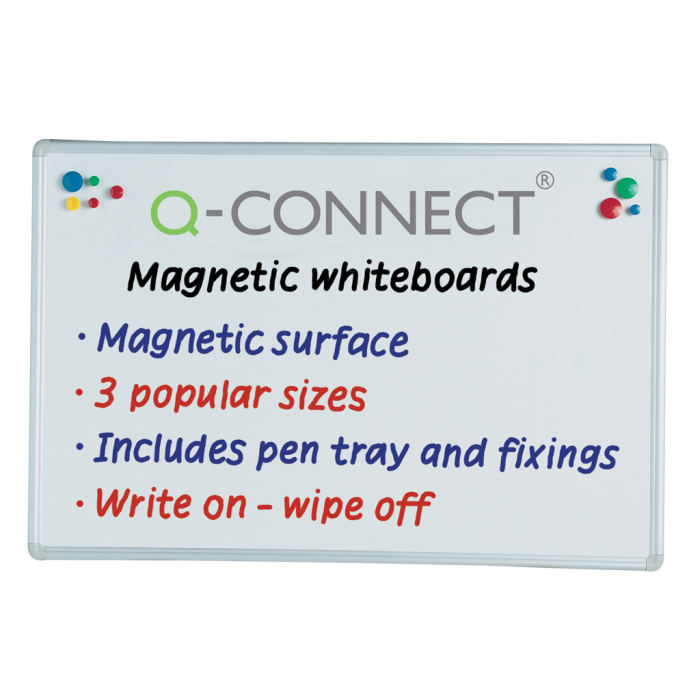 Biela magnetická tabuľa triedy economy s lakovanou úpravou povrchu. Kvalitný hliníkový rám s plastovými rohmi. Súčasťou je demontovateľná polička na odkladanie popisovačov alebo magnetov. Pri používaní popisovačov je zaručené ľahké písanie a mazanie. Dodávané s montážnymi prvkami. Možnosť montáže horizontálne aj vertikálne.