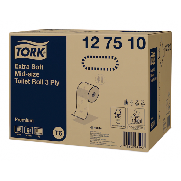 Dvojitý zásobník Tork na toaletný papier strednej veľkosti na kotúči je moderný a efektívny systém vhodný pre nízko až stredne frekventované toalety a umyvárne s vysokým dôrazom na spokojnosť zákazníkov. Zabezpečuje sa tak vysoká účinnosť a to, že toaletný papier je pre hostí vždy k dispozícii. Tork kotúč extra jemného toaletného papiera strednej veľkosti ponúka vynikajúci vzhľad so správnymi vlastnosťami.